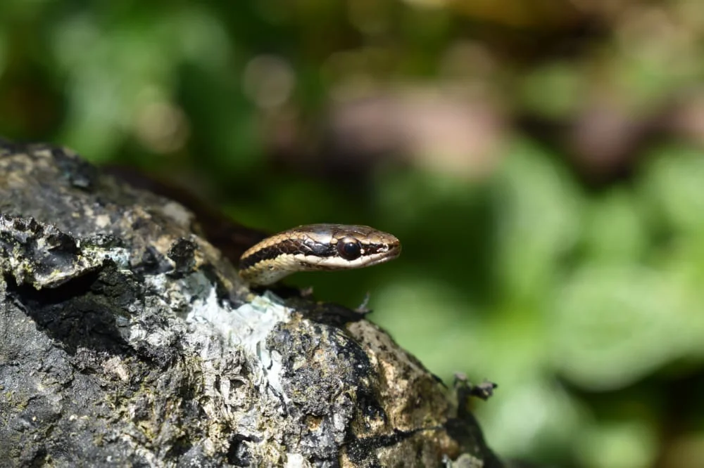 No snakes in the Dominican Republic are poisonous to humans. There are two local species capable of attacking animals like chickens in addition to the invasive escaped pet pythons. The rest of the snakes on the island are quite small and will mostly stay away from people. Some small species can be seen on ground after eating small animals like geckos and the like. With some luck you might surprise a green tree snake in a mango tree but also these will work hard to stay away from people. These green snakes rarely grow thicker than your little finger, but they can reach up to a meter or more in length.