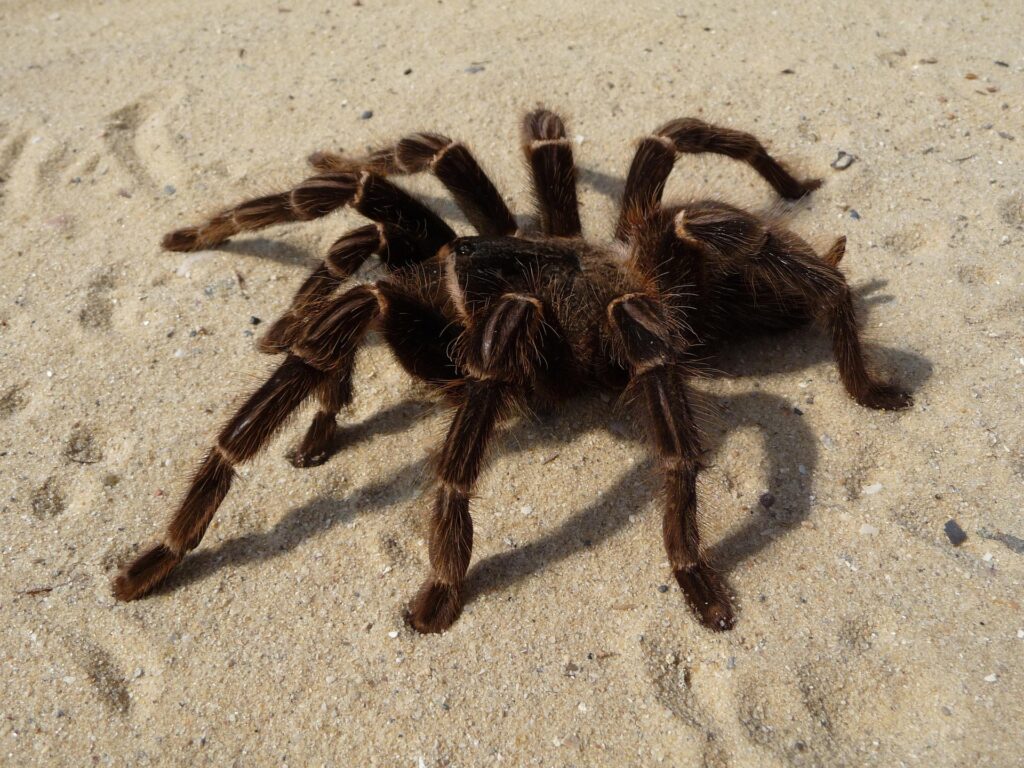 The biting insect causing more issues are spiders. The large and hairy Terantula is harmess and has no poison bite. They are shy stay far away from people. If spotted it would normally be at nighttime as they cross a dark road. At daytime you have to find them at their one home insode a hollow log or between rocks. They are dosile but can run very fast if they have a reason.